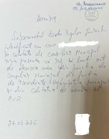 Acesta a decis să renunțe la toate funcțiile deținute în cadrul partidului AUR, părăsind atât conducerea organizației municipale, cât și calitatea de membru, renunțând totodată și la mandatul de consilier local.