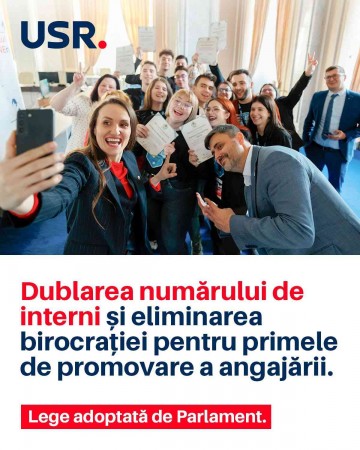 Parlamentul a adoptat, astăzi, legea USR prin care numărul de internshipuri disponibile pentru tineri este DUBLAT.