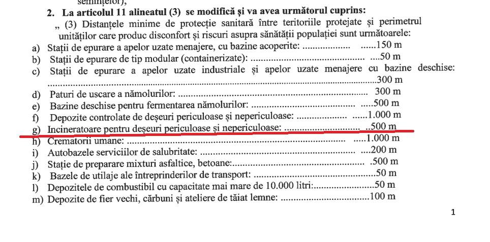 Am reuşit să obţin modificarea Ordinului ministrului Sănătăţii privind distanţa minimă de protecţie sanitară în cazul unor unităţi care produc disconfort şi pun în pericol sănătatea populaţiei. Astfel, în cazul unui asemenea incinerator de deşeuri, distanţa minimă revine la 500 de metri.